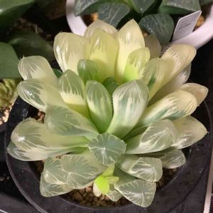 ●ススキノキ科 ツルボラン亜科 ●ハオルチア属 ●オブツーサ錦 😻😻 ベランダの湿度が今朝は70%もありました。😅🤣🤣 雨の日は、湿度あり過ぎで困りますね… 雨が当たらない様に、ビニールを掛けてありますのでハオルチアは濡れたりしませんが、ジメジメ感が嫌ですね…😅😅😅
