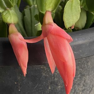 おはようございます😃ただいま1℃もありますよー🌤️🙌 今日はキュンキュン乙女倶楽部活動日🏷️目線は一緒 サーモンピンクのシャコバサボテンは、これから咲きます🌸🌵🌸🪴🥳