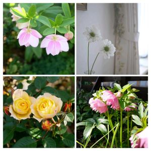 冬枯れの花壇…に… ふんわり〜ふわふわな花びらの🤍🌸🌹🌹💮🌿バラが仲良く🩷🙋🏻♀️✨️✨️ 🏷️目線は一緒 今日1日だけの🏷️ 皆さんも仲良く寄り添ったお花、野菜、植物で参加4649お願い致します… (*^^*)🩷🩷🙋🏻♀️🤗💮💮🌿ね〜