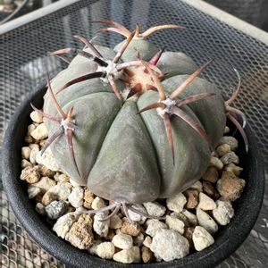 Echinocactus horizonthalonius 'Raitei'🌵 雷帝🌵 エキノカクタスの代表といえば金鯱ですが、持ってないので何気に自分は初のエキノ🌵通常ホリゾンタロニウスは太平丸になるんですが、良形の選抜種のみ雷帝の名を冠する事ができるそうです🔥ずっと欲しかった☀花火のような太い強刺とワックス質の青白い肌がめっちゃカッコイイ👿