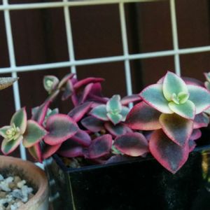 ウチにはこんな子もいるっちゃいる シリーズ第17回 クラッスラ ペルシダ 'ジンジャー ルブラ錦' Crassula pellucida 'Jinger Rubra' ジンガー ルブラとも ジンジャ ルブラとも 色々呼ばれてます リトルミッシーの大きくなった版のイメージ 縁取りステッチも同じです どピンク最盛期 強い子でモリモリ増えます 増えすぎて困ってます