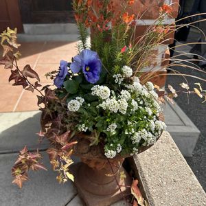 今日はネイルチェンジへ。 終わった後、5連休中の夫と待ち合わせでランチ🍽️ カフェの入り口あたりのお花に癒されました🌸