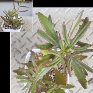 おはようございます。 前にカランコエ属のフユモミジを、ジュレさせてしまったことがあるため、室内です。もっと紅葉を見たいため、レースをめくり窓辺へ。これでもう少し色が出てくれるはず💦