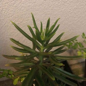 今日は仕事が休みで、バスの中から『えっあそこ何?』と気になっていたハウスに行ってみました。 ハウスのおじいちゃんに『多肉植物はありますか?』って聞いてみると、真ん中の通路の左側にちょっとあるよと言われたので、見に行くと写真の子とミルクブッシュかな?と言うのがあって、ひくに引けず、連れて帰って来ました。 この子は誰でしょうか? P.S. もぃもぃさんに『トナカイの舞』と教えて頂きました❣️名前が分かって嬉しいです✨✨