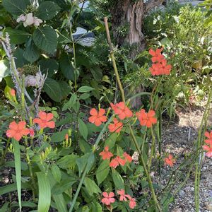 マンデビラ又はサンパラソル賑やかに咲いてます。毒草‼️につき取り扱い注意⚠️です😅