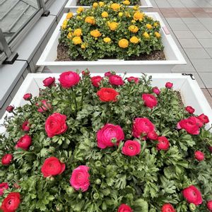 こんにちは✨今日は雨予報で☂️気温が10℃で😨寒いです💦 朝から JR大阪駅周辺での買い物に行ってきました🛍️ 先月はチューリップだった花壇が、今月は色とりどりのラナンキュラスが植えられていて🥰とても綺麗でした🎶
