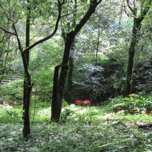 霧島の森の中 彼岸花の赤や黄色が蝶を集めています 2025.9.21 霧島の森