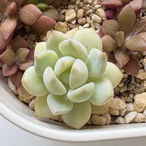 こんばんは😊 朝晩、涼しくなり気分良く過ごしてる姉さんです…❤️ そして、姉さん宅の多肉さん達も、ご機嫌良く過ごしてたり、療養中だったり… 様々な思いで楽しく過ごしてます🪴 そして 新入りも多数、大・多数💦 姉さん、迎えすぎのようで、ぼちぼち投稿致します😆 グラプトベリア属 グリムワン🐶 色白で、ぷくぷくと可愛いです。 これから、よろしくね🥰