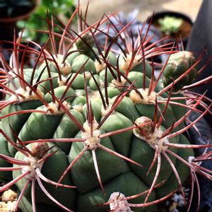 ほぼ1年後の姿シリーズ㊾ ※最近比較した子達は除外 ギムノカリキウム 新天地(でしょう!) ダイソー産 左下:去年11月 それ以外:最近 若干成長(していると思いたい)。 鉢替えしているから大きくなっているはず。ただ、サボテン棚が倒れた時に植え直しなら分からない(PCにある観察メモを見れば分かるかな)。 引き続きトゲが立派になるように育ててあげたい。