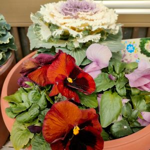 今日のお庭💕 パンジー ビオラ 葉牡丹 (*˘︶˘*).。*♡ オマケ 怪獣シロ。🫨