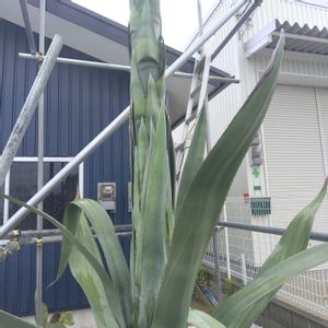 🏷️びっくりポン‼️ アオノリュウゼツラン 今年…1月に蕾がついてました〜…⑤ 久々に〜通ってみたら… (゜o゜;ビックリ~😲😳!!… 屋根より高い🌳みたいに ④ 電信柱と背比べ!!② 太い茎!!🌳みたいに… なってて…① 補強されてました…!! 花が咲くのは50年に一度くらいとか…… ご利益ありますように… 🙏🙏あまりの高さに… 花も…見えない〜💧💧(¯―¯٥) そばに小さな茎に花が… (◕ᴗ◕✿)💛🤍💚🤍💛🌵 ③ いゃ~たまげた…~!!! ビックリ~😯!! いい出会いに ありがとう♡🌳✨️✨️ でした〜(◕ᴗ◕✿)❣️