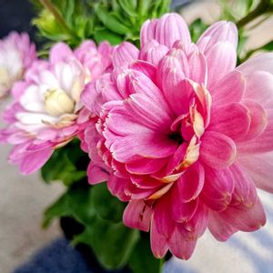 おまけのコ😊 ポチった👆️お花が届いた📦 …でもなんだか妙に重すぎる??? 🩷ピンクのオステオスペルマムは『オマケ』📝、 「育ててみてください🙇」と書いてある。 自分では、選ばない可愛いピンク🩷💮にデレデレ〜🥰 ポチったのは4️⃣、5️⃣のプリムラ「マーベルグリーン」 昨年、HCの店頭で出会って一目惚れしたコ🤩 1ポットのオーダーも、「手違いで3ポットをひとつに植え込んでしまったので…🙏」と、追肥までついてきました😂 結果的には、🎶お値段以上ー ニト〇ぃ〜🎶 って感じで 玄関先の置き場に困りつつも嬉しいハプニング、サプライズ🎊でした ※写真の順番変えました🙇… (灬º‿º灬)♡