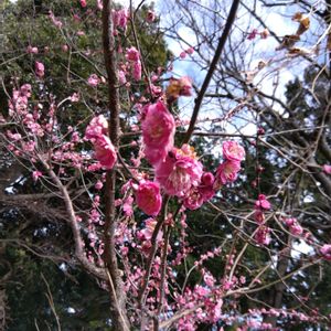 今日のお花 🌸ウメ(梅)🌸 1️⃣2️⃣3️⃣湖周り2/18 4️⃣冬至2/4(植物園) 5️⃣八重寒紅(ヤエカンコウ)2/4(植物園) 今年は寒波で梅の開花が遅れています 赤や白、桃色の梅の花が青空に映えて綺麗です