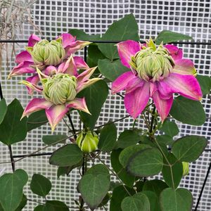 八重咲クレマチスモニターの新紫玉さん💜💚 7つの蕾が膨らんできました 楽しみです🥰