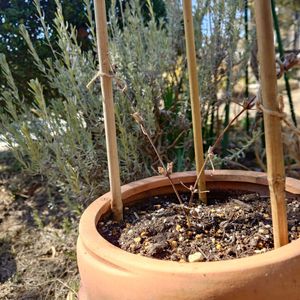 初めてクレマチスを育てます。 八重咲クレマチスですが、どんな大きさでどれだけの量が咲くのか楽しみです。 初めて冬のクレマチスを見て、地上部から枯れてても、芽は緑で芽吹き出しそうです。 一回り大きな鉢に植え付けましたが、根がしっかりしてます。 一年頑張っていきます。