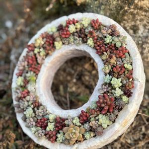モルタルリースにチマチマ寄せ✩.*˚ ネルソルはやっぱり水遣りが難しい💦