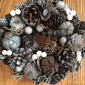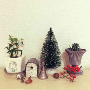 クリスマス風ディスプレイ☆南天の赤い実もどんぐりも本物♪真ん中のツリーだけフェイクです!