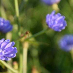🌼チコリ🌼 名前がわからず「名前を教えて」で回答を頂きました😄 ありがとうございました💕 2024年夏 竜飛岬にて 道端、広場、空地などあちこち咲いている 灯台守の方が植えたとのこと きっと居心地がよく長い年月で増えていったのでしょうね。青い色が涼しげで可愛らしかった💙 キク科 多年草 和名はキクニガナ(菊苦菜) 根は煎じてコーヒーとしても使える 花はエディブルフラワー、葉は白菜を小さくした形のものを食べる。食べる部位により収穫時期も違い、良く見かけるチコリの形は葉の上部を切った残りの茎?に生えてくる物らしい。その栽培方法を軟白栽培と言うらしい。