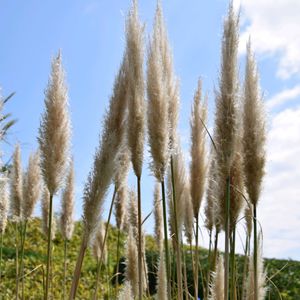 🌼🤍パンパスグラス🤍🌼 別名 シロガネヨシ オバケススキ イネ科 多年草 原産地南米 大きいもので3mにまで成長する フサフサとしたボリューが秋の訪れを感じさせます。 キラキラの稲穂がとっても綺麗🌾