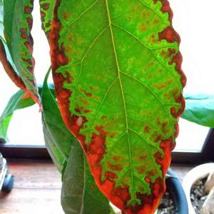 アボカドの苗ですが、葉の周囲が赤くなりました。 どういう病気かわかる方いますか?