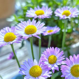 今日お花『デージー』 これは『ラベンダードリーム そら』開花期の長さに驚き❗️ラベルを見ると【開花期4月〜10月】エッ?真夏も咲くの?😳 似た感じの原種デージー『アルムの空』より背が高くお花も大きかったです。 体調を崩していたので1ヶ月ほど園芸店に行けませんでした😢 久々に行くと紹介したい花がたくさんあったらしく、このデージーもその1つでした♪ バイヤーさんと花苗コーナーをぐるぐる回りながら、お花の水やり🚿についてまわりながら、お花の話や産地・展示会へ出張に行った話、たくさん喋った〜😆スッキリ✨