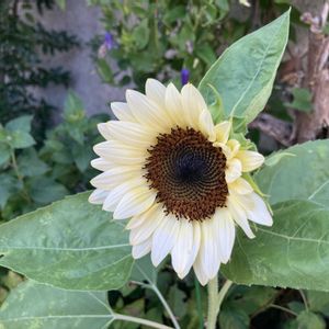 【ひまわり】 タキイ種苗 『ホワイトナイト』 Instagramの 「白いひまわりのタネ」 プレゼントキャンペーンで 当選した ひまわりさん🤍🌻 黒芯の白いひまわりが 咲きました❣️ 美しい〜😍 ひまわりを種からちゃんと育てたの初めて?久しぶり?で 先日のミニひまわりと同時に蒔いたのですが… 発芽した❣️と思ったら… 食害に遭い全滅…💦 2度目も食害に遭い… なんとか1つだけ咲いてくれました‼️ 下手過ぎる😂 白いひまわり見たかったので本当に嬉しい😭 花粉が出ないとか書いてあったのですが、種採れ無いのかな?? 採れたら良いなぁ😊 花径約12cm 草丈約60cm