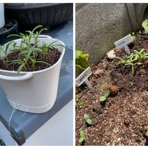 タキイ種苗様からいただいた3種の種は どれも元気よく発芽して、今朝見てびっくり‼️コスモスの根っこが脱走してるー笑 庭のガウラの横に植えました😆 植物達に煽られてます笑