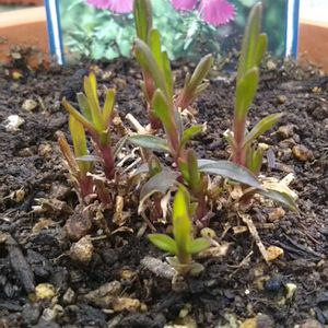 おはようございます😃 地味な写真で申し訳ありません🙇 ダイアンサス アムレンシスです。 1月29日に50円で投げ売りされてたのを 連れて帰りました☺️ 宿根草なので当時は地上部分は枯れてましたが 芽吹いてきました😊 このダイアンサスは宿根草で 開花時期が春ではなく7月から8月という ちょっと珍しいタイプです❗️ タグには『バラ🌹に合う宿根草』と書いてありましたが 残念ながらうちにはバラ🌹が無いので バラ🌹をお迎えして本当に合うのか 確認してみたい気持ちもあります😅