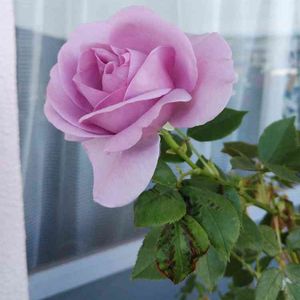 今朝薔薇🌹🌹🌹 カインダーブルーさん 台風の影響を1番受けてしまった薔薇さん🌹🌹、蕾付いた枝がかなり折れてしまい。葉もかなり傷んでしまいましたが、元気に咲いてくれてます。