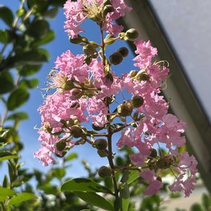 サルスベリ咲きました🥰💕 今年最初の開花です🌸 青空に映えてきれい🤩 うどん粉病がひどいですが、花だけだとわかりませんね💦 2枚目pic…エキナセア パープレア イチジクの木陰でひっそりと咲いています☺️💕 🏷️19日はピンクの日! に参加します☺️