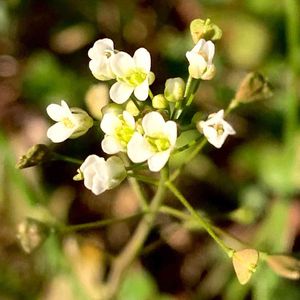 ナズナ 小さな花が咲き終わり…よく見ると花びらをくっつけた出来立てのかわいいタネが❤️