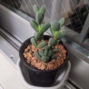 コルプスクラリア・ビーンズレーマニー🐟️ ぼくモル鉢にカットした苗を植えてから2ヶ月。。。 根っこが生えるまではシワシワで哀れなお姿になってたけど、最近は凄くイキイキして可愛い💕 植付けた時よりバランスもGOOD✨ (☆▽☆) レーマニーもぼくモル鉢が気に入ったみたい😊
