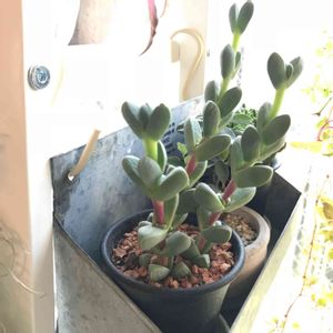 連投失礼します❗️ 深夜明け…2件の園芸店をハシゴして新しい子をお迎えしちゃった💕😁そして、深夜明けの頭なもんだから、同じの2つ狩ってたことに帰ってから気付く🤣 ルンルンで帰宅したのも束の間…夜の雨に備えてガレージの棚に避難させてたはずの子持ち蓮華ちゃんがっ❗️❗️雨がかかって、蒸れてました😭急いでジュレった葉をもいで家の中に…このまま⭐️にならないことを祈ります😅
