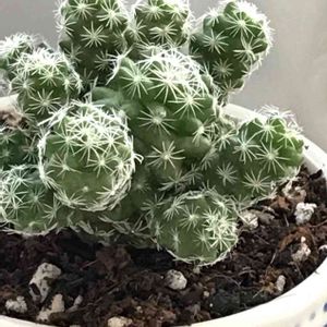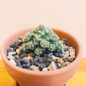 1ヶ月くらい前にDAISOからお迎えした銀手毬🌵 こんな子と出会ってしまったら連れて帰りたくなりますよね?ねっ?💕(同意を求む笑) すでに子株がいっぱいついていて、子株がもう少し大きくなったら、どれが親株か分からなくなりそうですね~🤣🤣 あっ、親株の頭に一つだけポツンと黄色っぽいのがあるんですが、これは何かなぁ?🤔🤔