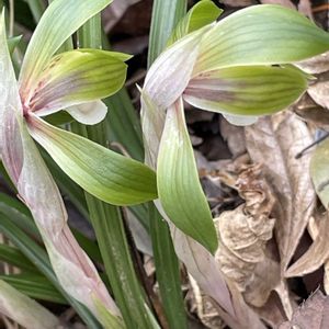 今日のお花 シュンラン 地面に這いつくばらないと撮れない😅 自宅のではないので、さわれない🥹 こっち向いて〜🤣 2025,3/11撮影 市川万葉植物園にて。