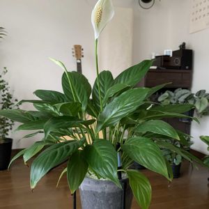 100均で買ったスパティフィラムの花が咲きました 小さな苗で買ったのに勝手に大きく成長しました 開花は難しいって書いてあったけどラッキー✌🏽
