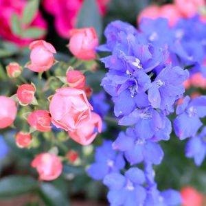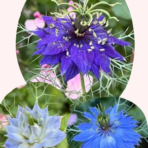 淡い水色、ブルー、紫のニゲラ💜 2枚目は、ウォーキングで出会ったピンクのニゲラ🩷