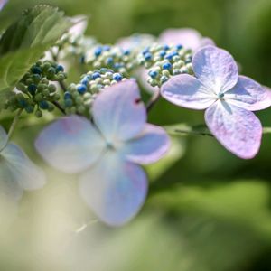 おはようございます😊☁️ きょうのお花 (アジサイ) 上 アジサイ🩵 下 ヤブミョウガ🤍 相模原公園に行った時の一枚