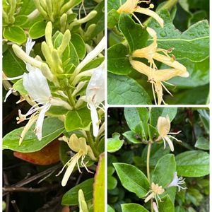 おはようございます😊 一枚目 きょうのお花 (スイカズラ) 生垣に絡まって咲いてました🤍💛 二枚目 ドクダミの花 咲き方色々 たくさん咲いている中に 有りました。 5月中旬 散歩道