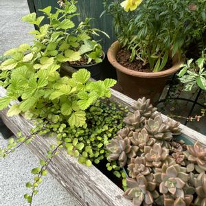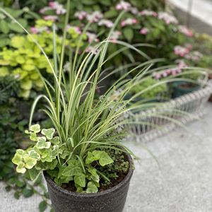 葉の長〜い折り鶴ランなどで、グリーンの寄せ植え作ってみました♪ 暑い夏に備えて🤗