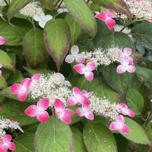 山アジサイ紅、常緑アジサイ碧の瞳、金平糖が咲きかけて来ました🤗