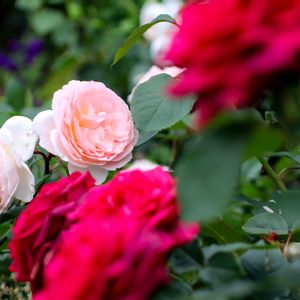 赤いバラ🌹 (バラ科) イングリッシュガーデンの小径に咲く赤いバラさん。誰もいない静かな小径を進めば、絵本の世界に迷い込んだ雰囲気に🌲🌹🌲🌲🌹🌲🌲🌹🌲