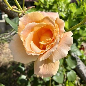 バラやらいろいろ混み混みの中から咲いてきました😆❣️かわいいー💕下にさしてあるタグが見れない状態なんですが、何だったかな😅