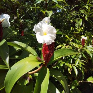 フクジンソウ (福神草) ショウガ目 オオホザキアヤメ科 (大穂咲菖蒲) 別名 コスツス・スペキオスス インド マレーシア 東南アジア原産 🇸🇬に住んでる息子から 珍しいお花が 咲いていたよ~と ラインが~😌 ☔熱帯雨林気候区に 群生して 螺旋状に捩れた 茎頂から 穂状花序を伸ばして 赤い苞に包まれた 白い花を咲かせます と、ググる先生の受け売り~😌💨 🇯🇵🗾も 亜熱帯のように 🌞🔥蒸し暑い夏 昔々は 日射病 熱射病と 呼んでいましたが 熱中症と云う 言葉は 2000年から 使ってるのですね😳 明日は 立秋~🍃 ですが まだまだ💙水分補給✨ お写ン歩は🌳🚶♀️💨日陰を~😊