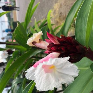 9月❷❺【福神草】*浦添市仲間 ひろし☆〃さん、ありがとうございます…✍🏻 *球根植物 *ショウガ科オオホザキアヤメ属 後ろから失礼💦 太陽に背を向けて咲いてます💦 花びらが薄くて透明。それに比べ、茎はワインレッドで強烈…繊細さと大胆さが共存してます。 2019.9.17 am 10:13 ☀️
