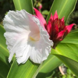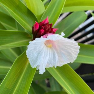 おはようございます!(^^)! 朝の散歩!又々変わったお花、発見!ジンジャー系のお花?白で素敵です(o^^o) フクジンソウと教えて頂きましたー! オオホザキアヤメ科 根茎は食用、漢方にもなるようです! 夕方しぼむ、一日花💗💗