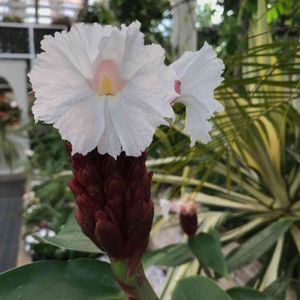 シンガポール旅行で出会ったお花⑦。 なんでしょう…この赤い本体?から咲く可愛い白いお花は✨