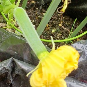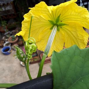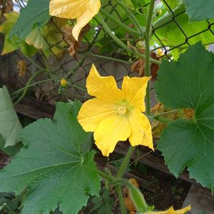 遅めに撒いたヘチマです🌱 花が咲きました🌼✨✨ お天気が良いので育ってくれてますが朝晩、寒くなって来たので育ってくれるか心配になります