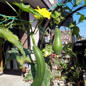 ご近所の糸瓜。こちらではナスと一緒に炒めて食べます。ゴーヤとも良く合います。私はみそ炒めが好きです。酢の物やみそ汁にも入れますよ。お肌ツルツル?😁