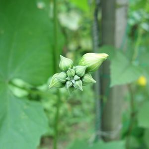 今朝のヘチマです。 グリーンカーテンになってます🌿🌿 実がなってると聞いて、見に行きました^ ^ お花も🌼ピッカピカ✨